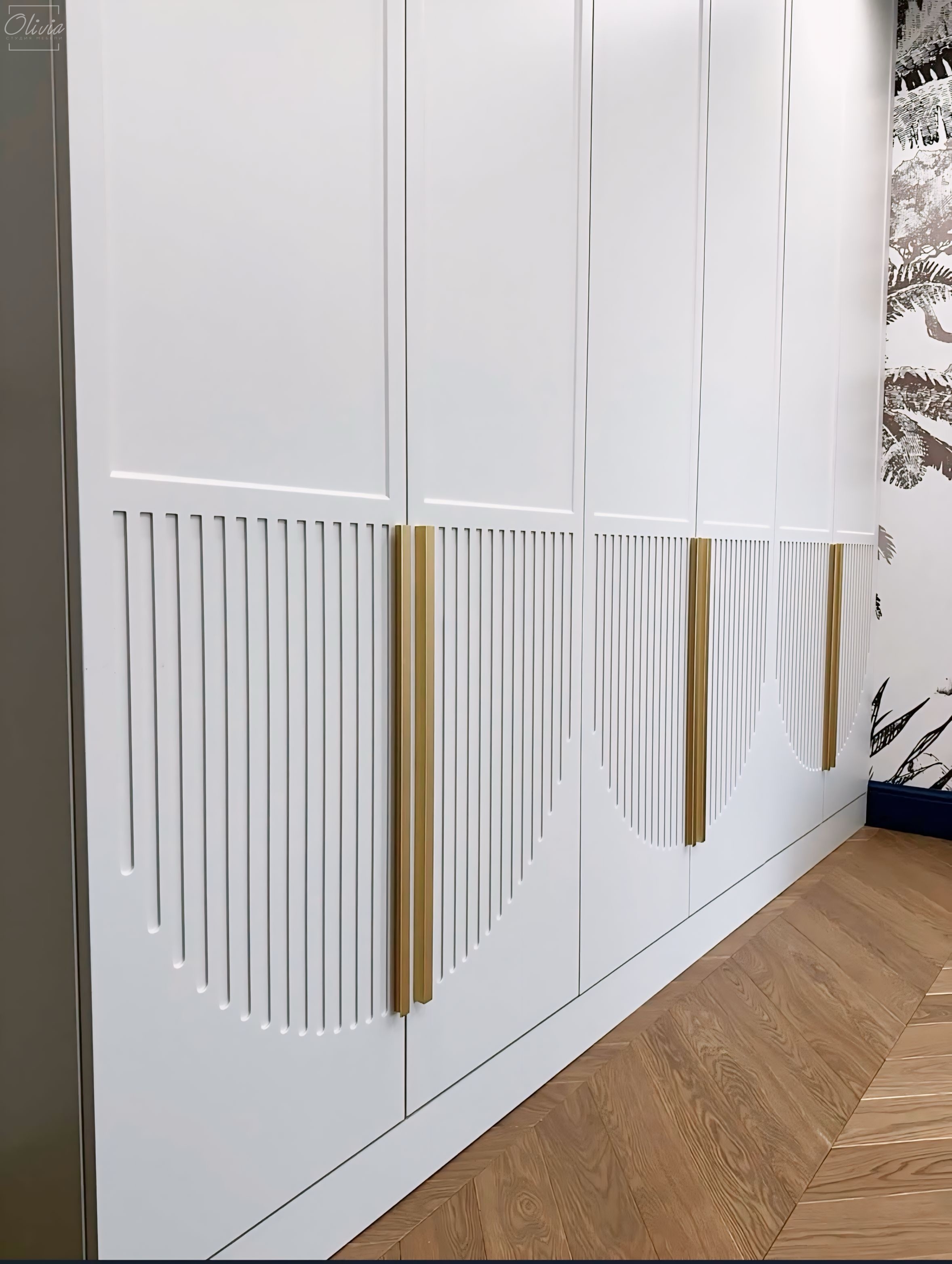 - Современный дизайн: лаконичные белые фасады с изысканными декоративными элементами (вертикальная фрезеровка и плавные дуги) создают ощущение лёгкости и простора.